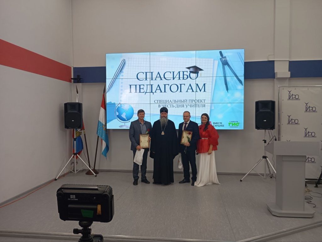 Митрополит Самарский и Новокуйбышевский Феодосий принял участие в награждении работников образования Самарской области. От Самарской епархии были вручены благодарственные письма за многолетнее плодотворное сотрудничество ректору Самарского института развития образования И.Н. Минаеву и заведующему кафедрой поликультурного образования ИРО А.В. Нуждину.